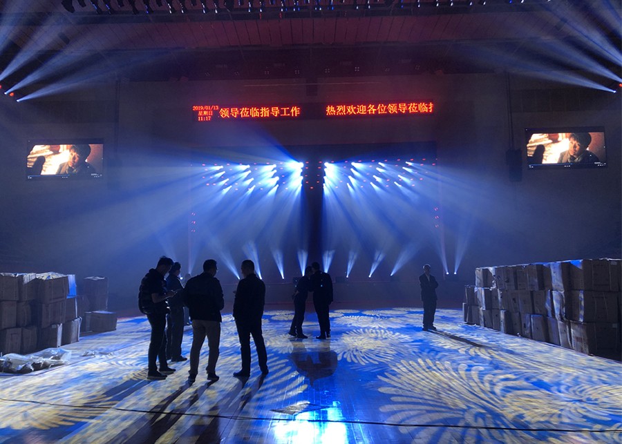 其中體育館應(yīng)用了近380支燈具。其中均勻分布在體育館內(nèi)應(yīng)用了77支440W三合一搖頭電腦燈DREAM440BSW,6支1400W圖案切割電腦燈DLW1400LITE-P,2支DLW 1400 FOLLOW追光燈。